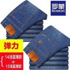 ¥159.00罗蒙(ROMON)牛仔裤男春夏新款商务休闲男士宽松直筒长裤子大码薄款棉弹裤男裤 14浅蓝薄+14深蓝薄 32(推荐2尺5腰围)