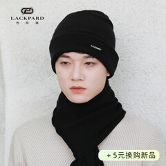 ¥68.00LACKPARD羊毛针织帽男士秋冬季百搭时尚冷帽保暖防寒帽子男加绒加厚毛线帽 云碳黑加绒 有弹性(适合头围56-60cm)