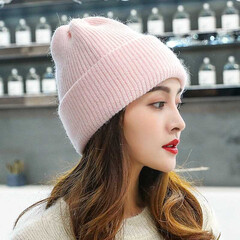 ¥39.90针织帽帽子女秋冬季加厚保暖韩版百搭毛线帽秋冬天潮毛球学生护耳男 粉色