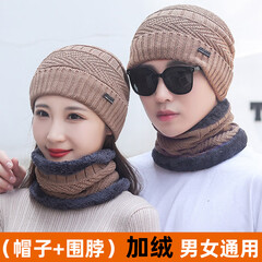 ¥35.90HOCR帽子男冬季保暖针织毛线帽冬天护耳防寒帽子男士加厚套帽围脖套装 英文字母铁标围脖帽子-卡其
