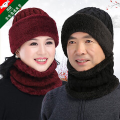 ¥58.80浩冠 中老年人帽子男冬天奶奶保暖毛线帽女爸爸老头帽冬季老人妈妈围巾脖套 黑色 帽子围脖两件套