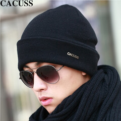 ¥69.00CACUSS羊毛毛线帽男士双层加绒加厚保暖护耳帽翻边冬季针织帽子男Z0079 Z0339黑色白字