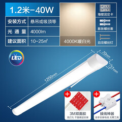 ¥83.00飞利浦led长条灯管日光灯一体化支架灯家用办公室宽体高亮仓库商场厂房 宽体1.2米40W宽度70mm+双面胶 冷白光6500k