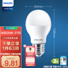 ¥15.57飞利浦(PHILIPS)LED灯泡节能客厅家用超亮照明E27大螺口灯泡9W6500K白光经济型