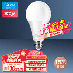 ¥19.20美的(Midea)LED灯泡节能E27大螺口螺纹家用光源 15瓦白光球泡单只装