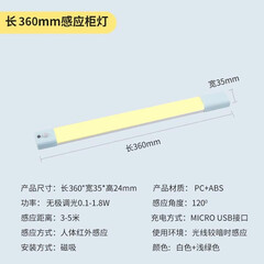¥69.00【鸿视】橱柜灯带衣柜人体感应充电层板led长条厨房灯条展示柜底酒柜无线 360mm白光人体感应充电款