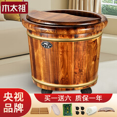 木太祖 泡脚桶木桶家用洗脚盆实木碳化泡脚盆木质系列 碳化30带盖带轮+艾60+按摩珠+毛巾+搓脚石