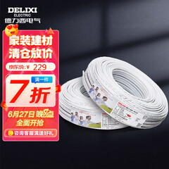 ¥229.00德力西电气电线电缆铜芯国标护套硬线BVVB 2芯1.5平方 白色50米