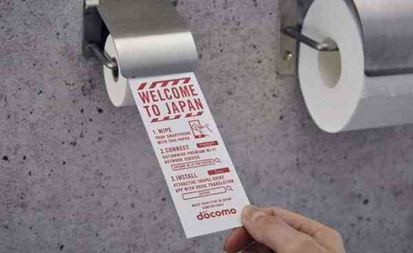 该厕纸由日本移动巨头多克莫公司买单,上面显示了该公司的公共无线网信息及其智能手机旅行应用的详细信息。