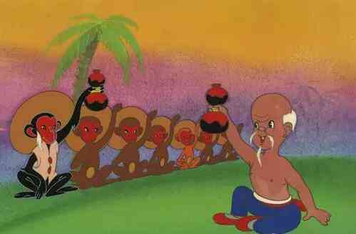 "Monkey see, monkey do"不难理解,还记得以前有个动画片叫《过猴山》,故事大概是这样子滴:有个卖草帽的老爷爷经过一座猴山,因困倦在树下小睡。一群猴子看到老爷爷戴着草帽,就偷走了老头身边的一担草帽,小猴们对老爷爷随手丢在地上的草帽和酒葫芦产生了兴趣,想办法将草帽弄到手正要对酒葫芦下手时,老爷爷被惊醒。生气的老爷爷一心想拿回草帽快点过猴山,无奈小猴们就是不给,注意到小猴们一直在模仿他的动作,老爷爷有了好办法。这个故事用"Monkey see, monkey do"来形容就比较形象了。