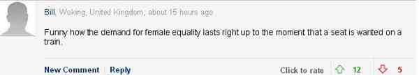 'Funny how the demand for female equality lasts right up to the moment that a seat is wanted on a train. '