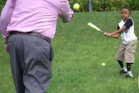 手术12个月后,小男孩实现了用双手挥动棒球球棒的梦想。