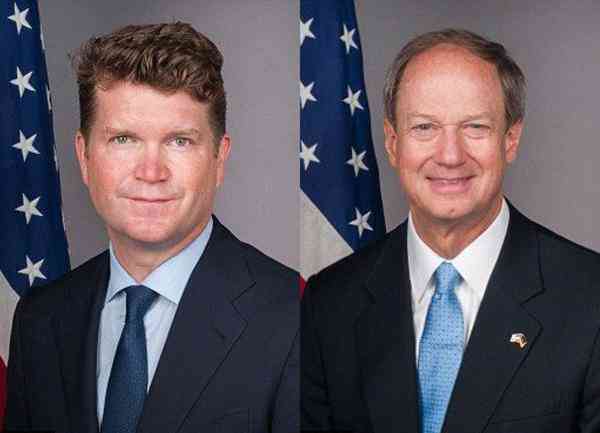 The order could leave the United States without Senate-confirmed envoys for months in critical nations like Germany, Canada and Britain. John Emerson, the US ambassador to Germany, is seen left. Matthew Barzun, Washington's envoy to London, is seen right