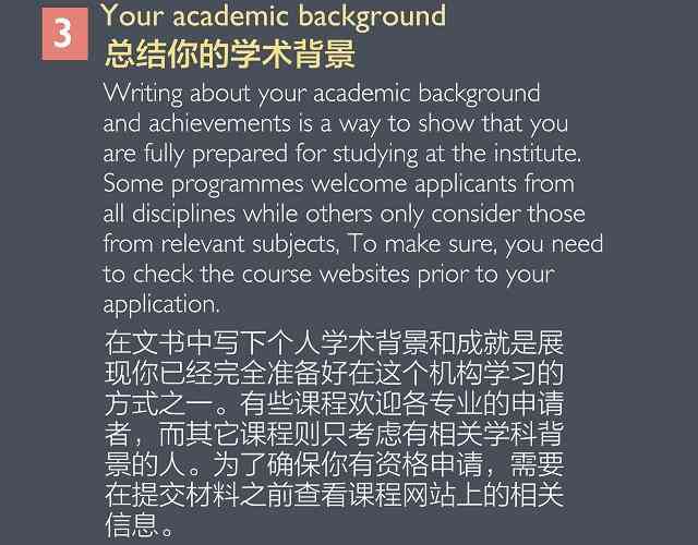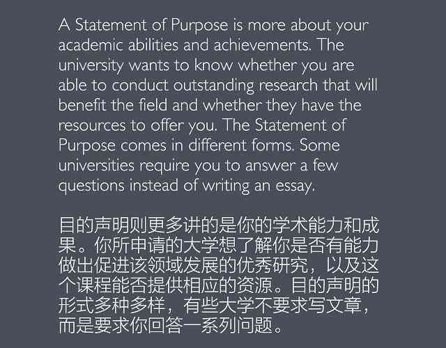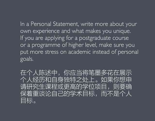 个人陈述(Personal Statement)或目的声明(Statement of Purpose)是英国大学申请文书中的必备材料。这两种材料看起来十分相似,但其实侧重点应该有所不同。看图,了解这类文书应该包括的内容。
