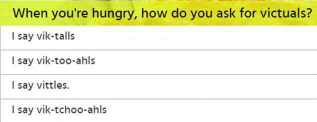 The 'c' in the word victuals is silent, so it should come out as 'vittles'.