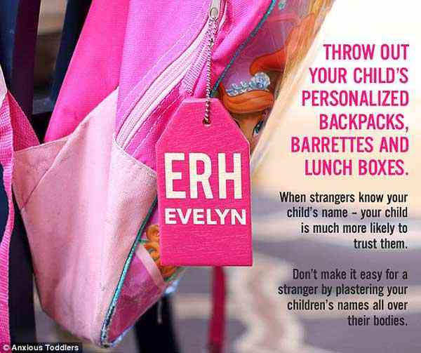 The first piece of advice tells parents to throw out their children's personalised rucksacks, lunch boxes and other items that visibly show off their child's name to people they don't know.