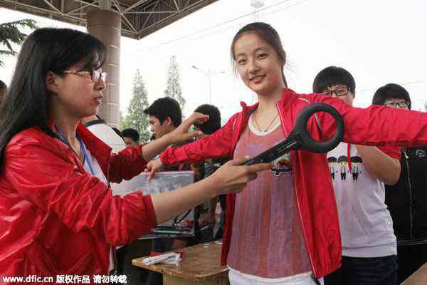 A student goes through a metal detector in Lianyungang, Jiangsu province. [Photo/IC]