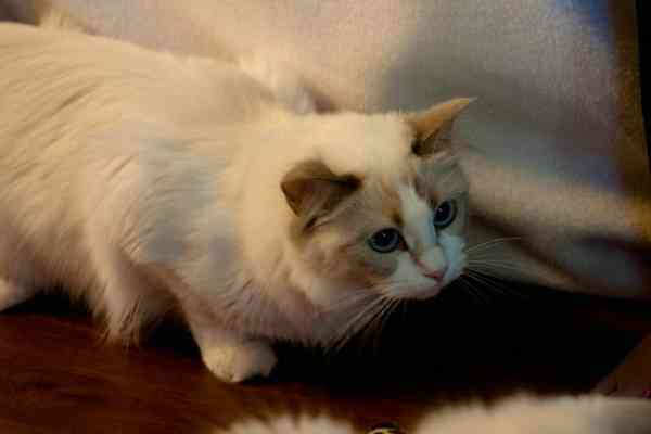 猫的这个瞳孔非常富有弹性,它收缩的能力也非常强。所以猫的视觉非常敏锐,它应当是人视觉的6倍这么强。这种敏锐的视觉跟宽阔的视角,使它所看到的东西的范围要比人大得多。那么这种极强的视觉,那么也构成了它生存的必备的一个条件。