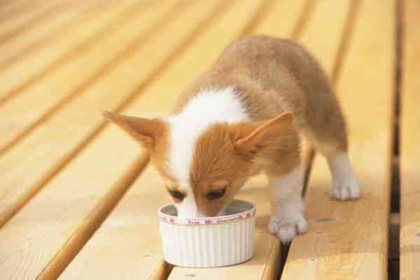 柯基幼犬不能吃太硬的狗粮,需要泡软后给它使用。
