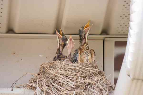 出生的小鸟很怕冷,在下雨天气温下降时小鸟最易死亡。小鸟最容易饿,一天最少要喂养3次以上,不然挨不住冻,长的慢。