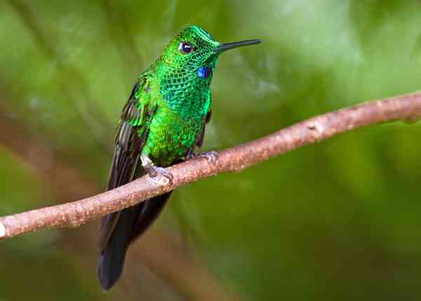 蜂鸟的体型很小,蜂鸟的羽毛一般是蓝色或者是绿色的,雌鸟的羽毛相较于雄鸟是比较暗淡的,雌鸟一般比雄鸟大。